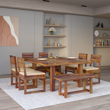 - Axel Sheesham Wood Dining Table Set (6 seater) In Light Honey