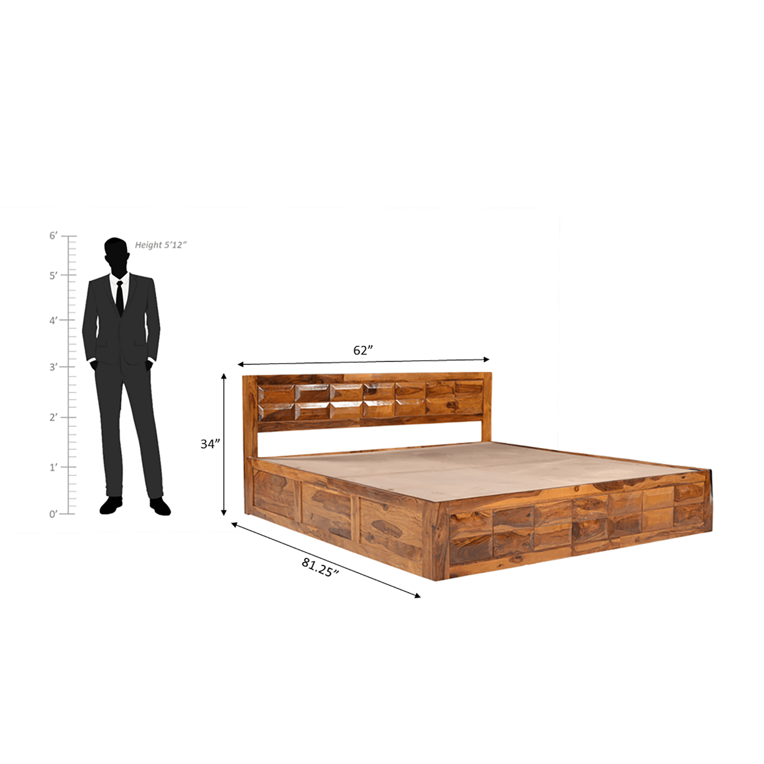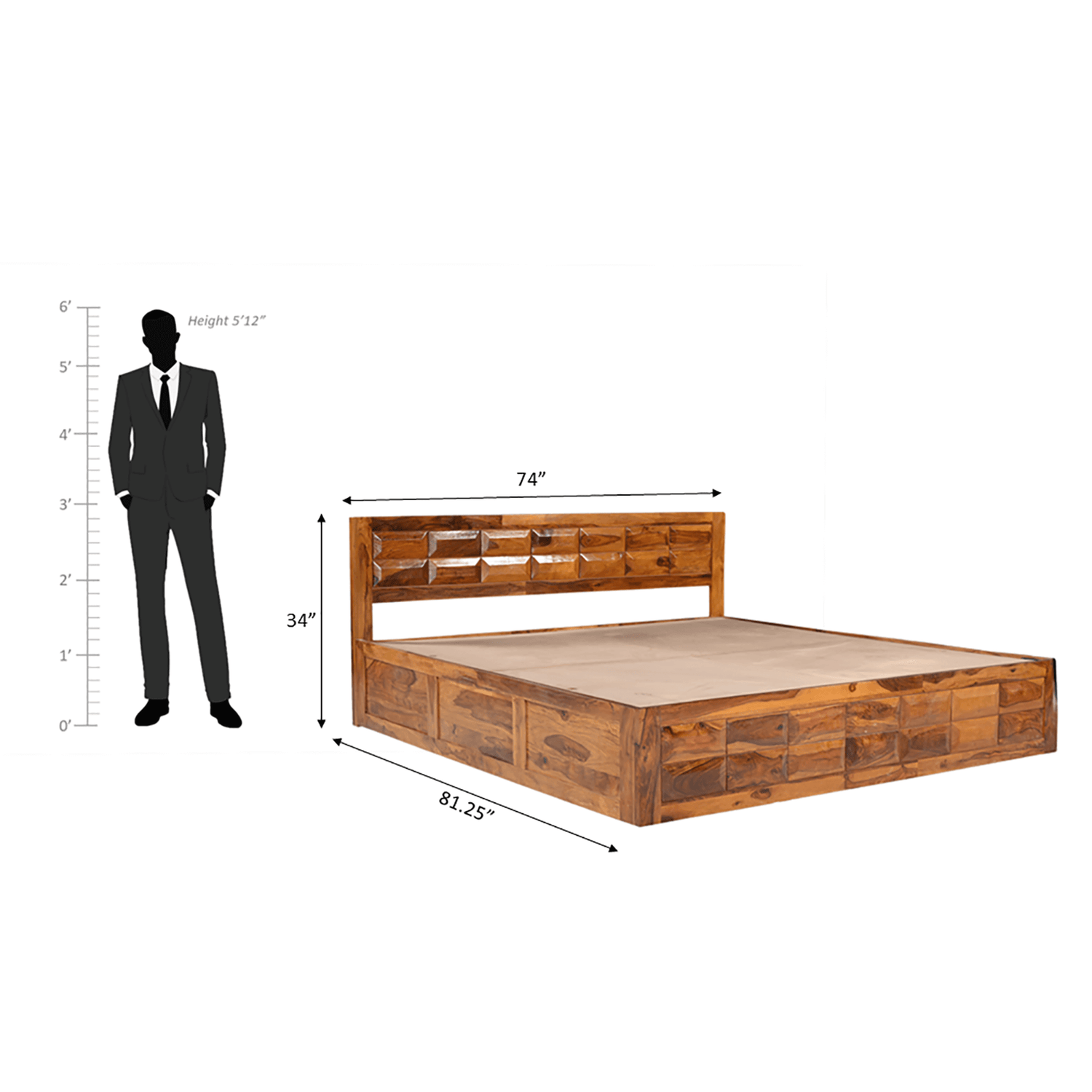 - Sleep like Royalty with Arcadia Sheesham Wood King or Queen-size Bed with Storage