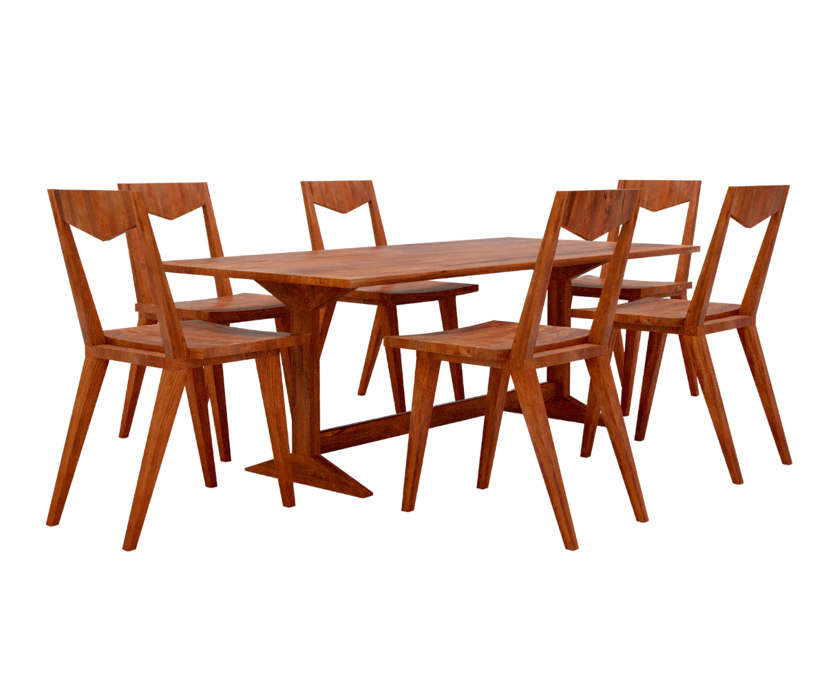 Comfort & Style: Each chair encircling the wooden dining table is designed for comfort, featuring a style that complements the table's design. This set exemplifies skilled craftsmanship, infusing your dining room with a sense of warmth and refined sophistication.