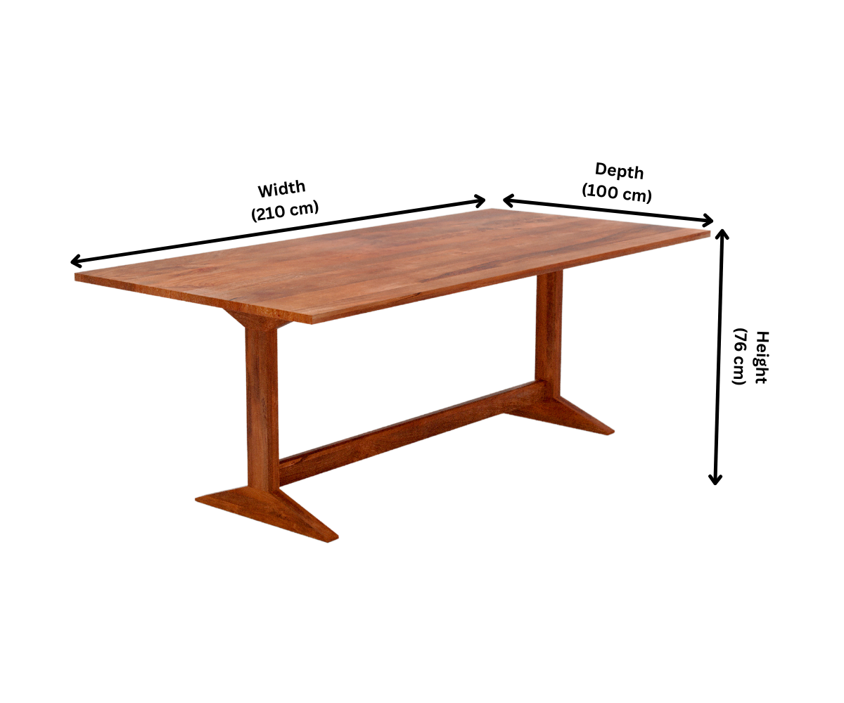 Design & Materials: The Solid Wood Dining Table Set features a spacious surface with a sophisticated matt finish that highlights the light brown hue of the mango wood. The integration of natural wood creates a harmonious blend of rustic allure and modern sophistication.