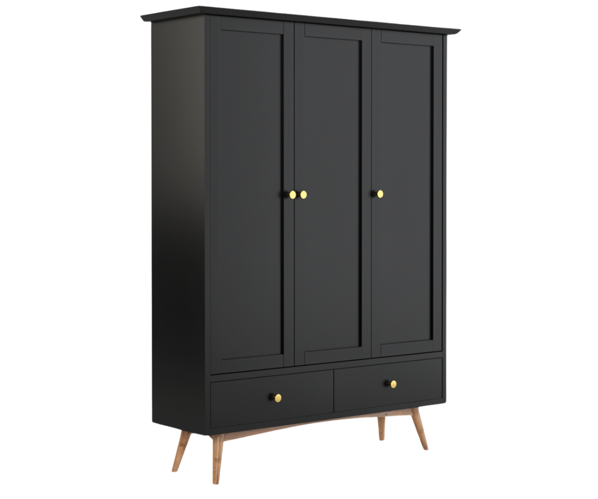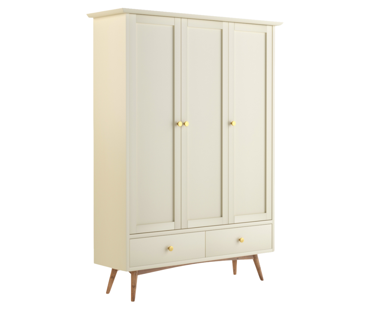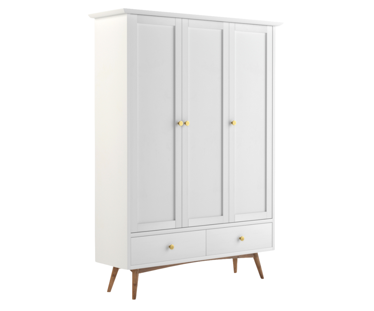 Eluxin White Solid Wood 3 Door Wardrobe with 2 Drawers