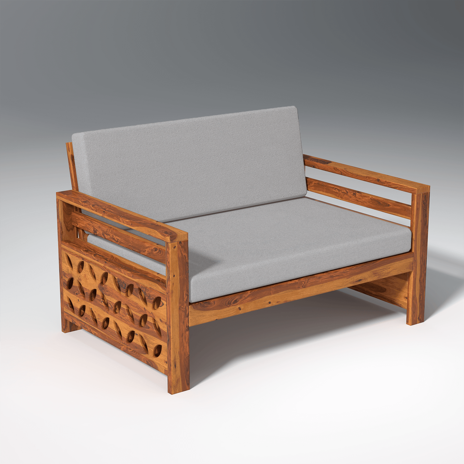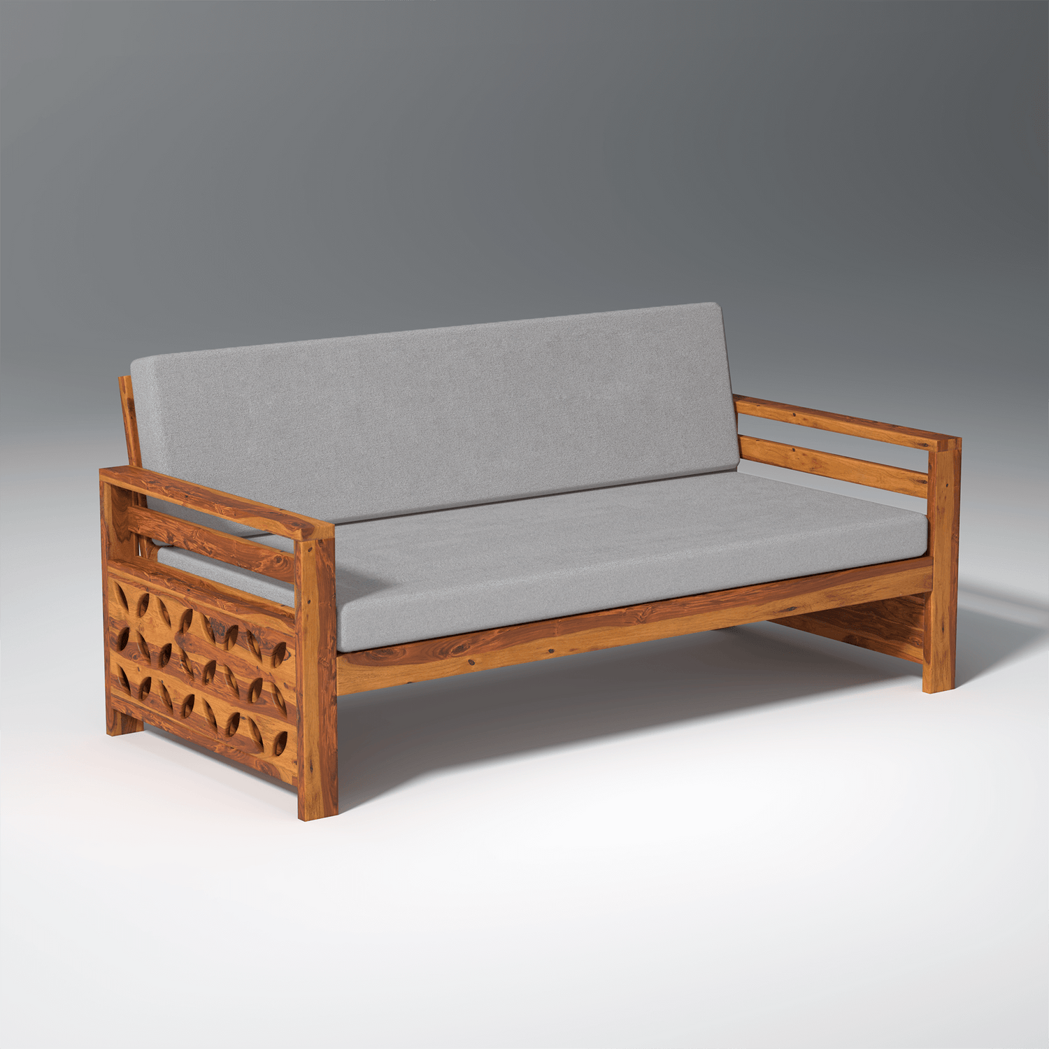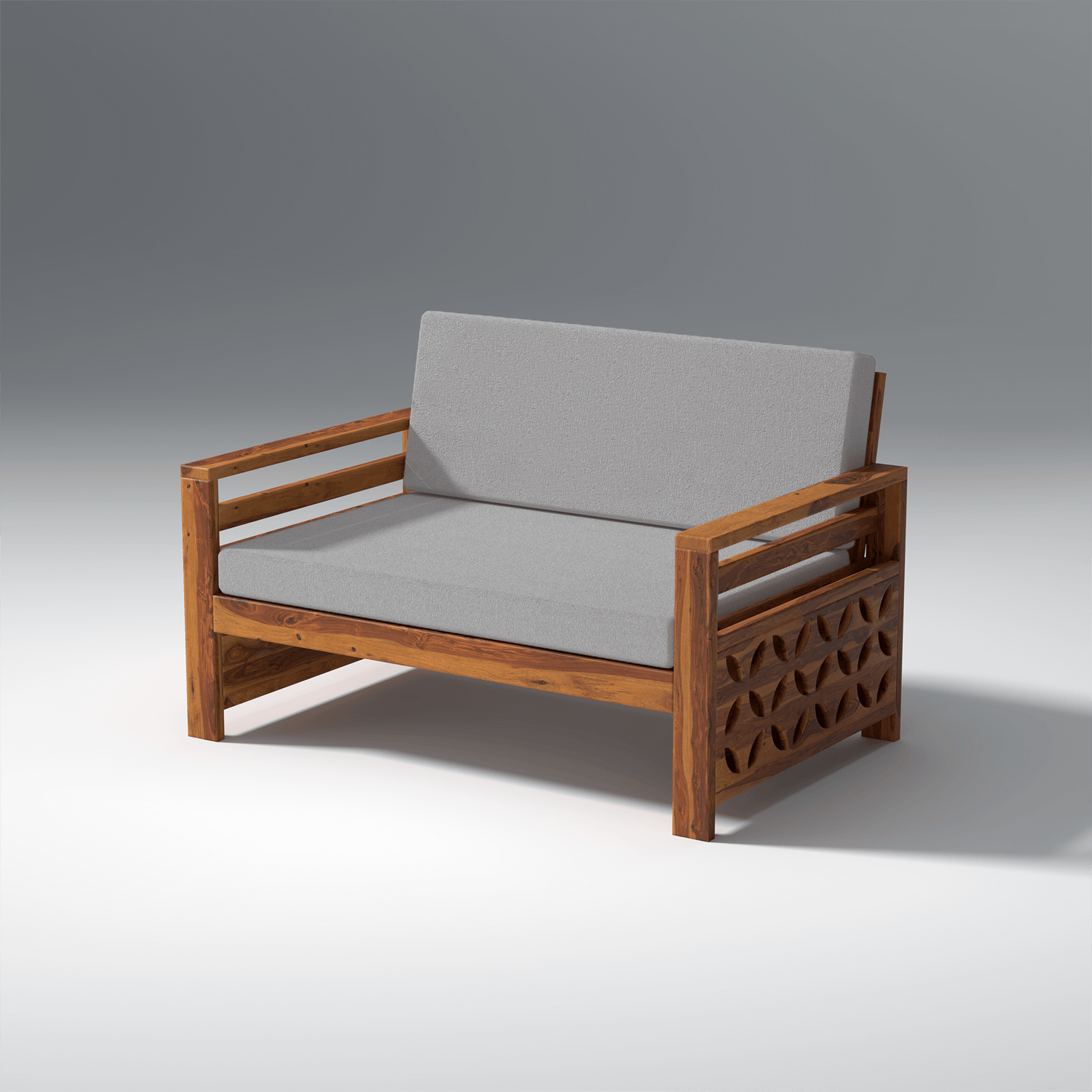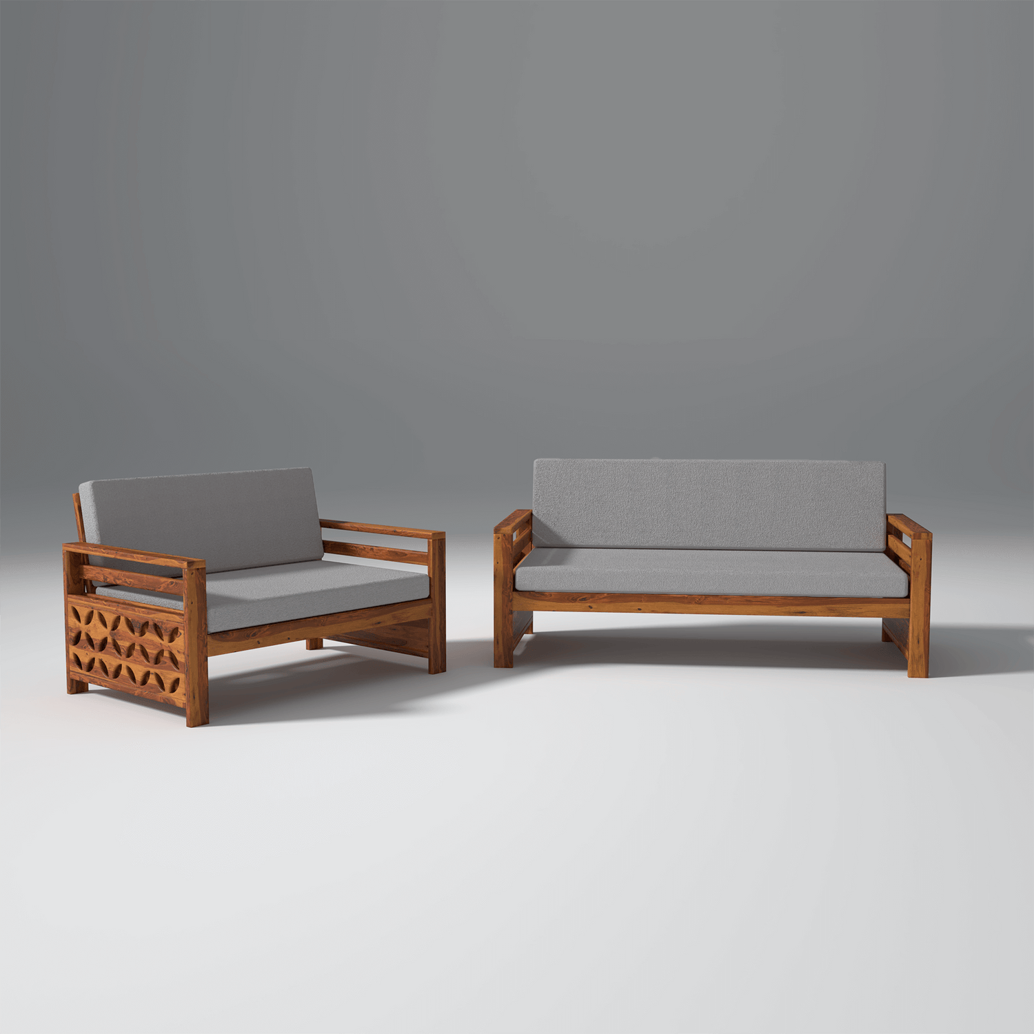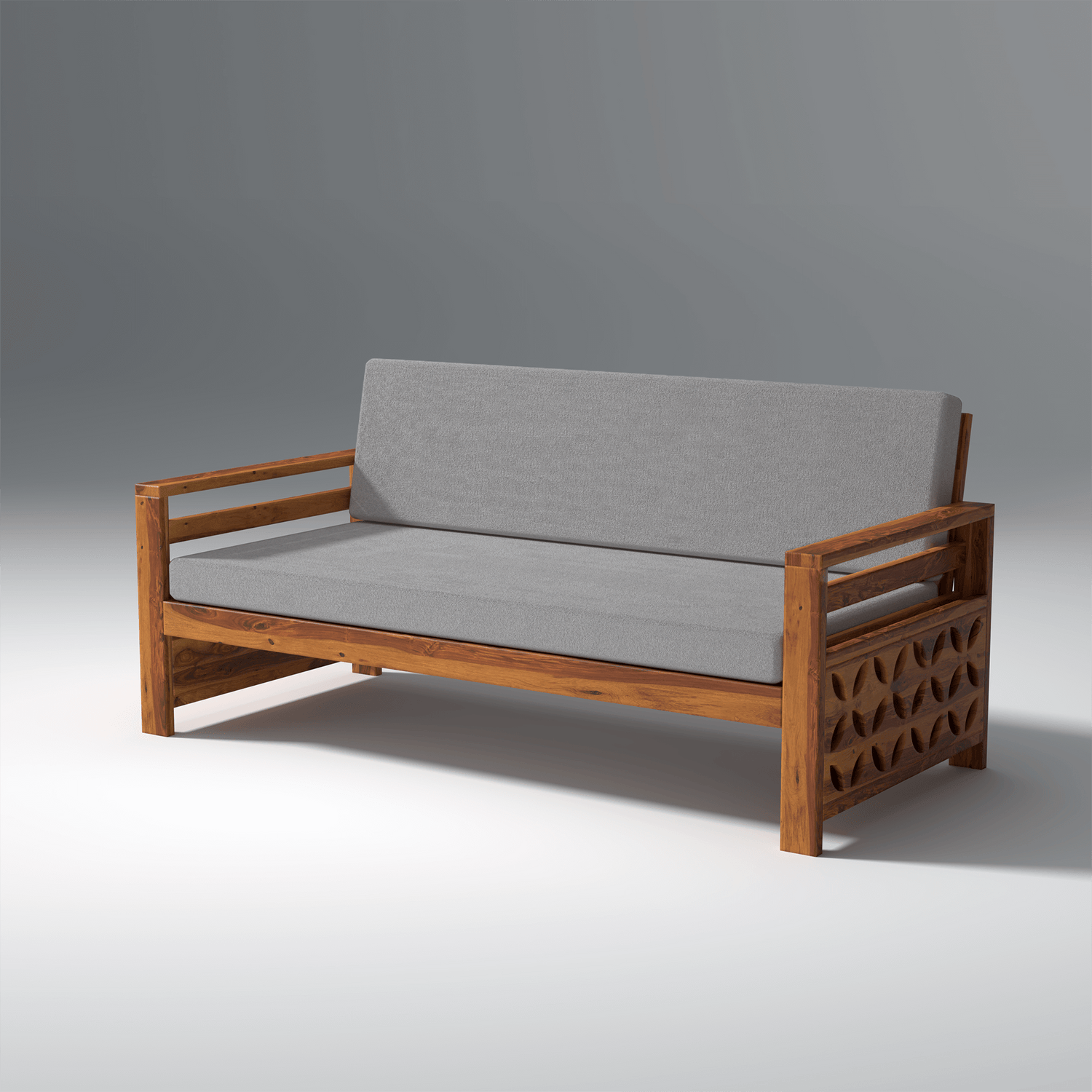 The Nirvana Wooden sofa set, comprising of a 2-seater, 1-seater, and another 1-seater, offers a versatile and comfortable seating arrangement for your living space.