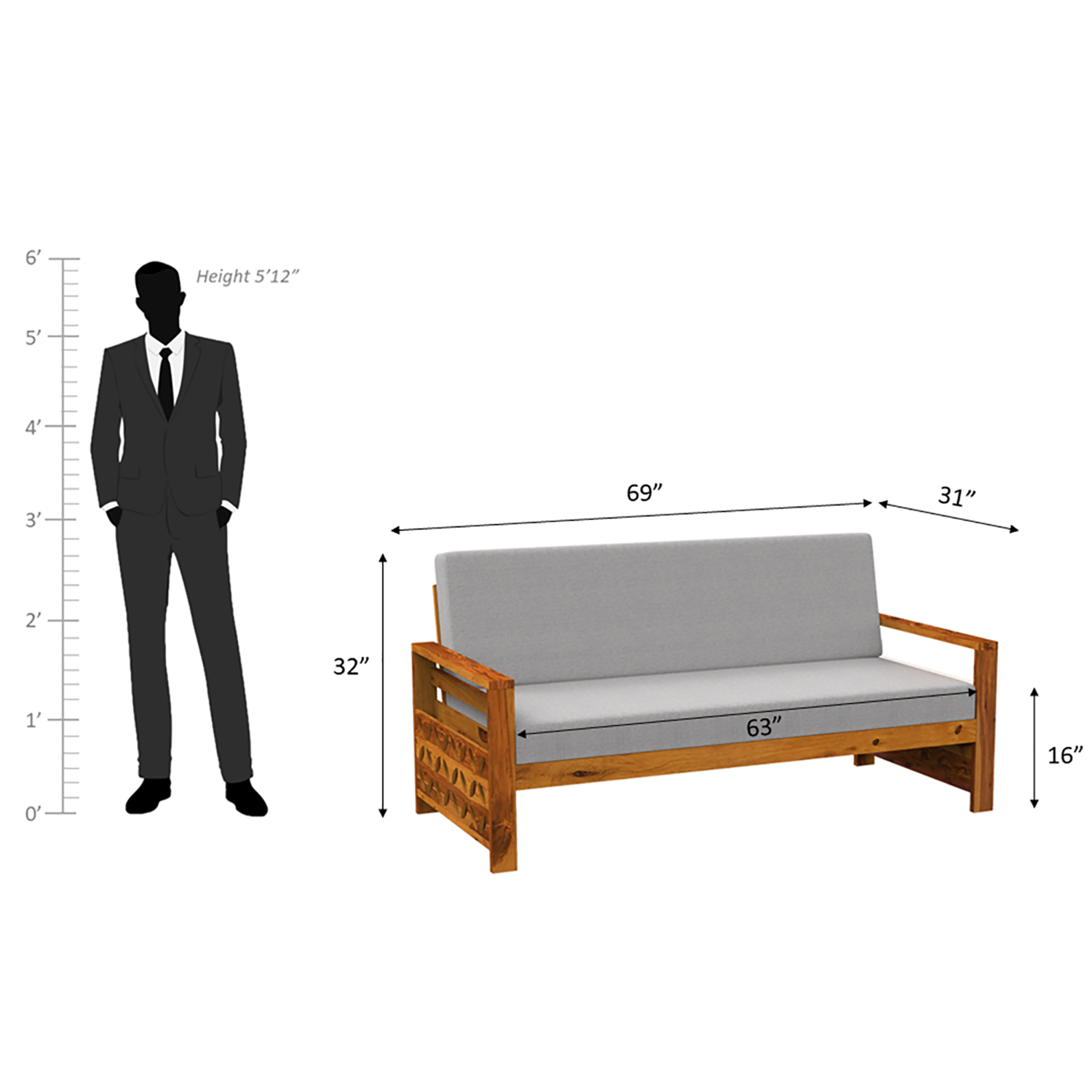 Nirvana Wooden Sofa 3 seater- large space for your family.
