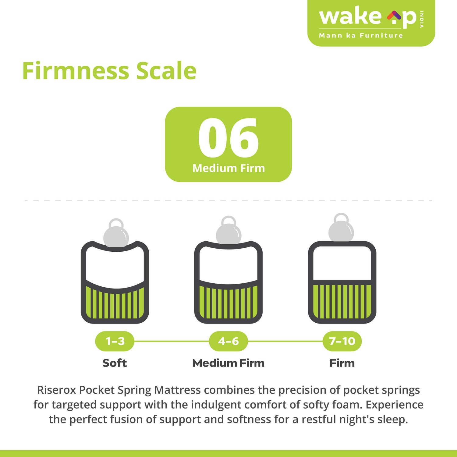 WakeUp India offers a range of Pocket Spring Mattresses with varying firmness levels. Whether you prefer a softer or firmer feel, there's a mattress option to suit your comfort preferences. This customization ensures that you can find the perfect mattress for a good night's sleep.