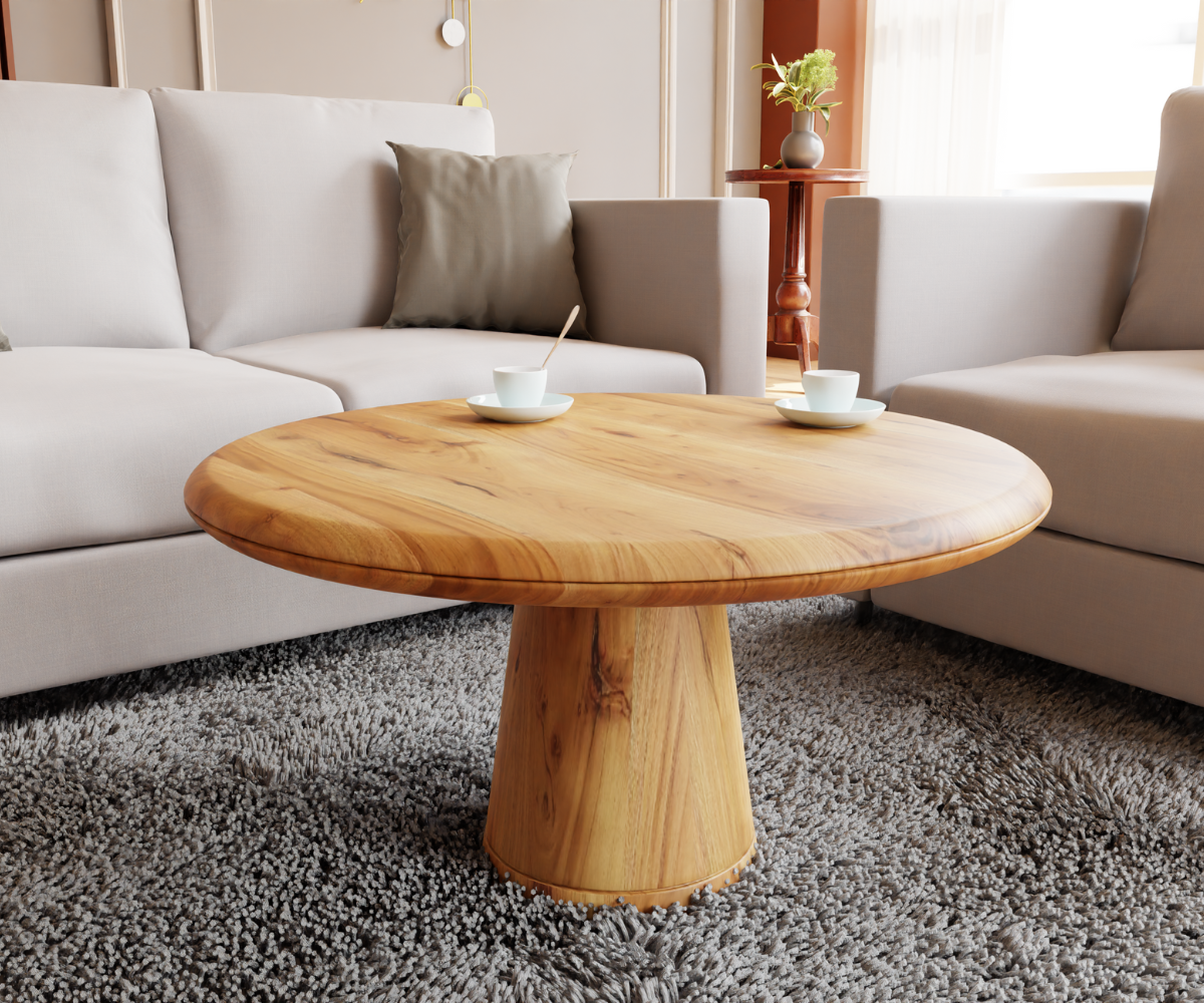Upgrade your living space with this modern furniture. It's stylish, practical, and good for the environment. This round mango wood coffee table, with its natural matte finish, will be the centre of attention in your living room and a testament to your commitment to style and responsible living. Experience the blend of contemporary elegance and enduring art– choose our round top coffee table today.