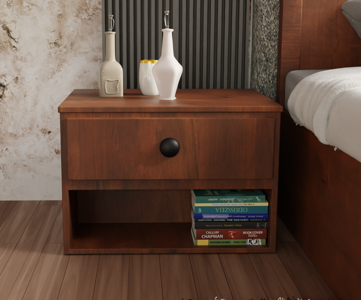 Carefully curated to cater to diverse bedroom spaces, our Wooden Bedside boasts a versatile size, ensuring it seamlessly integrates into your nightly retreat. With ample surface area and thoughtful storage solutions, it comes with a drawer with enough wooden space under it for keeping your books, magazines and other items.