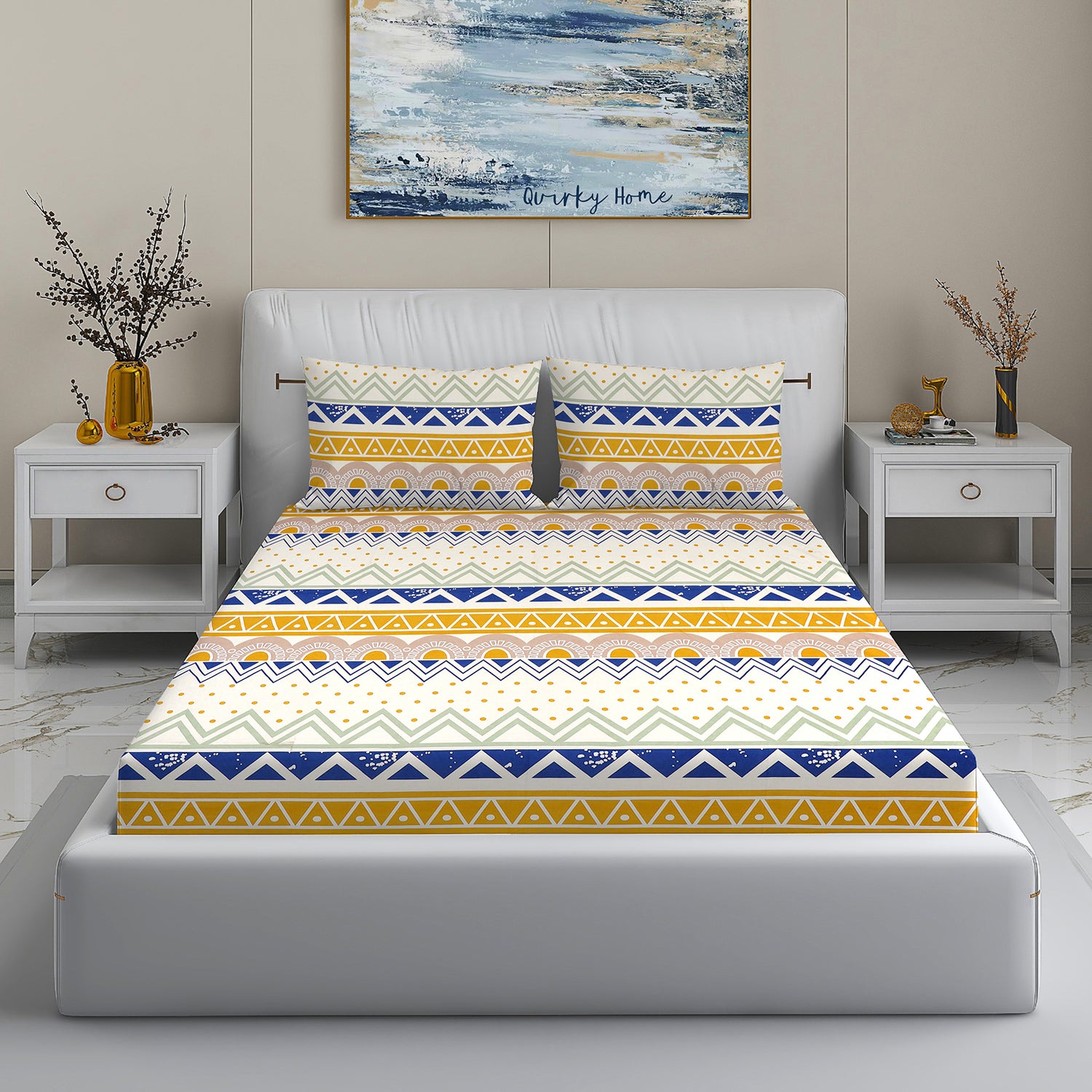 Wakeup INDIA StyleNest Printed Premium Cotton King Size Bedsheet with Two Pillow cover