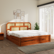 6. Prism Engineered Wood Bed with Storage Box in Light Teak Finish